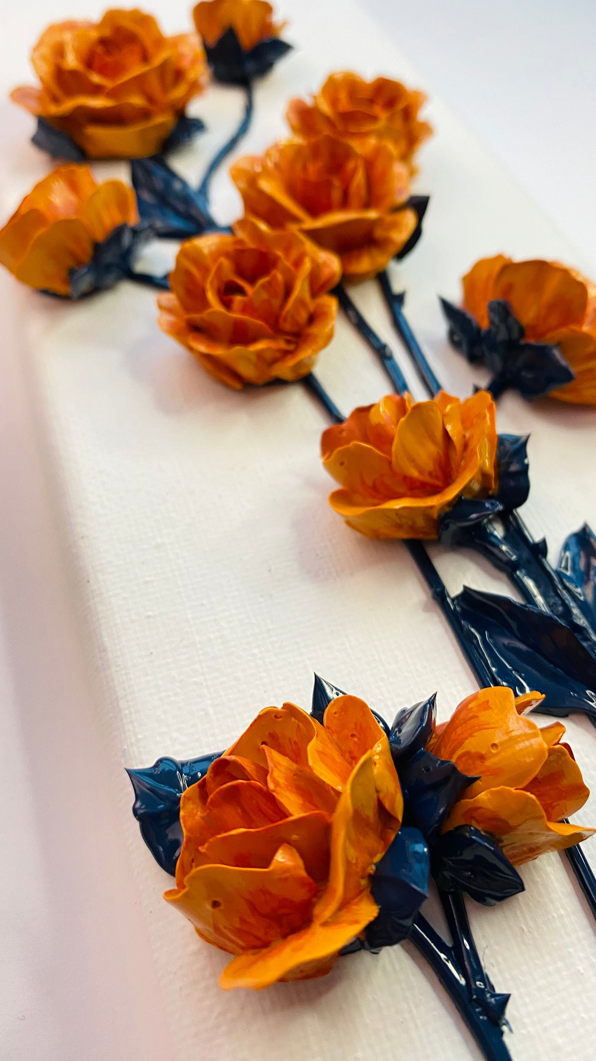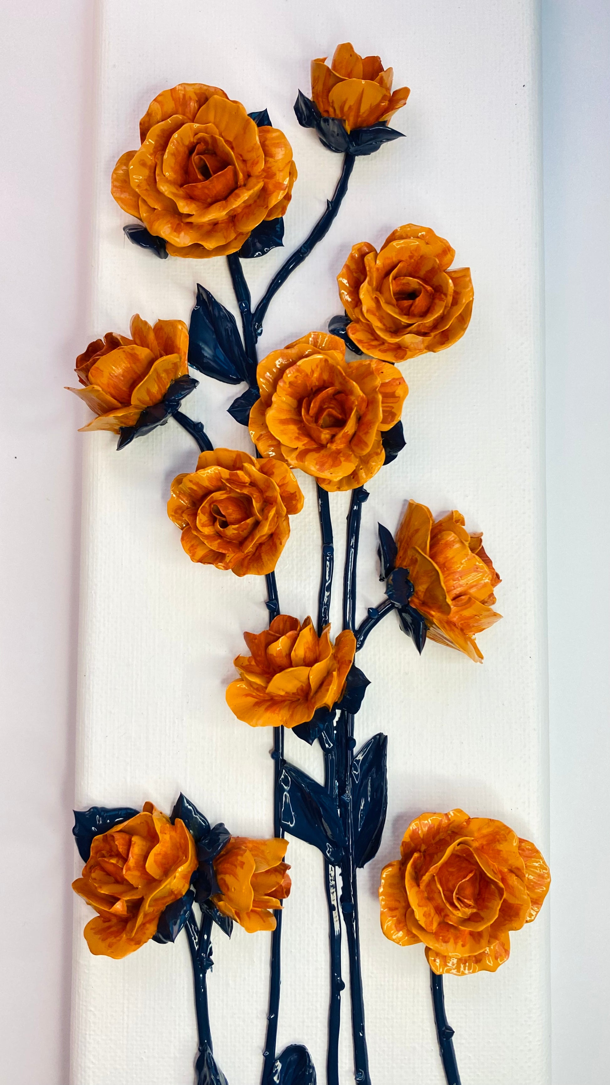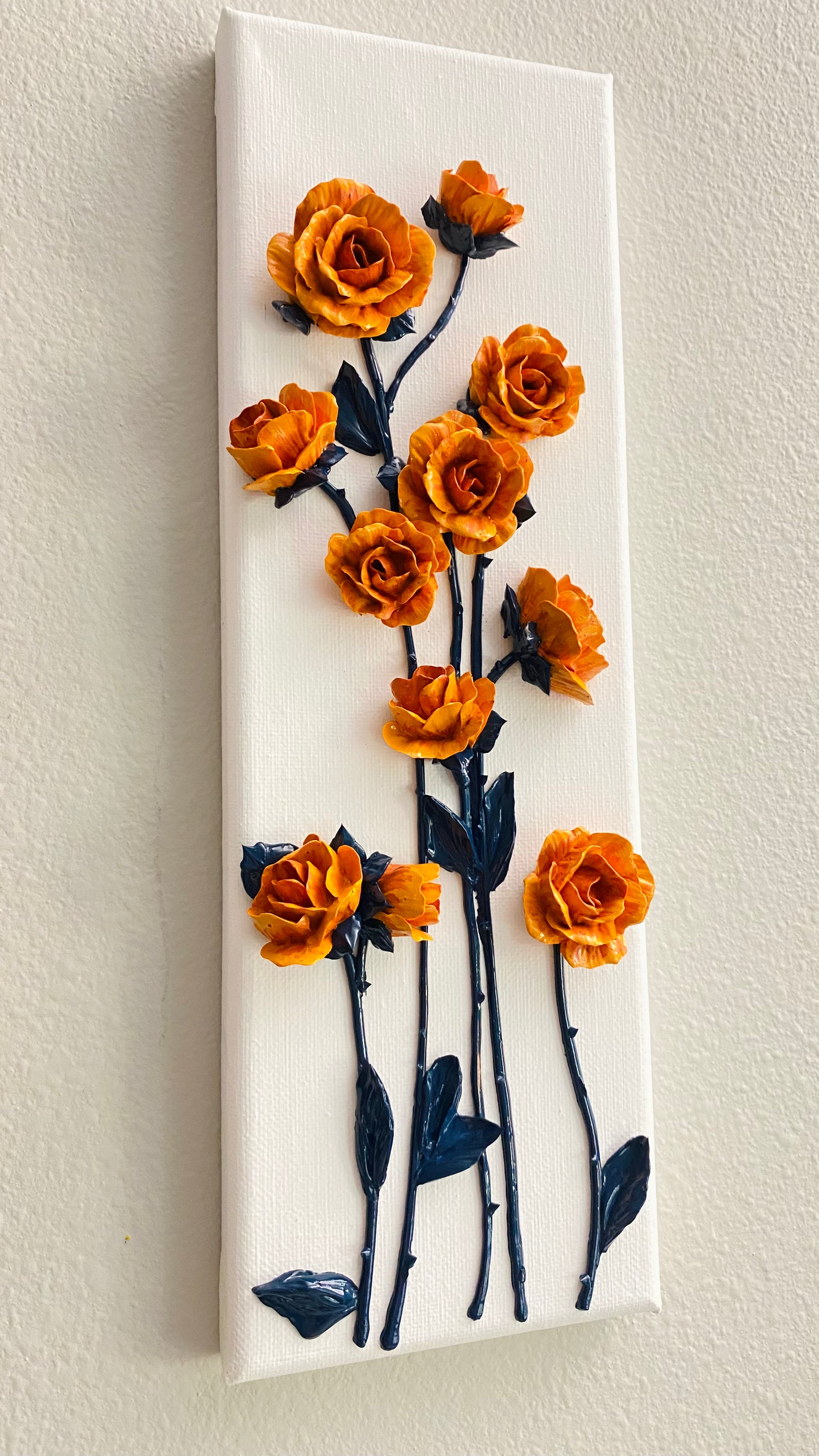 Heavy texture acrylic paint roses on 4x12 stretched canvas